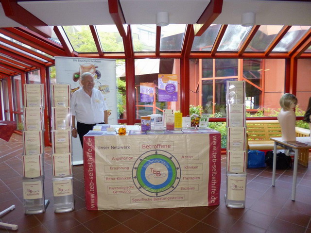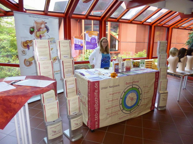 Herr Bibow und ich hatten bereits beim Aufbau unseres Standes einige Besucher, die sich über die Bauchspeicheldrüse informieren wollten. Also wurde erst informiert und dann weiter aufgebaut. Wir von TEB sind flexibel.
