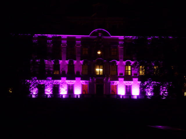Herzlichen Dank an Herrn Hurst. Er gab die Genehmigung, dass das Schloss beleuchtet werden konnte, und Herr Schopf von der Firma Lautmacher setzte es um. Das Schloss strahlte in Lila. DANKE!